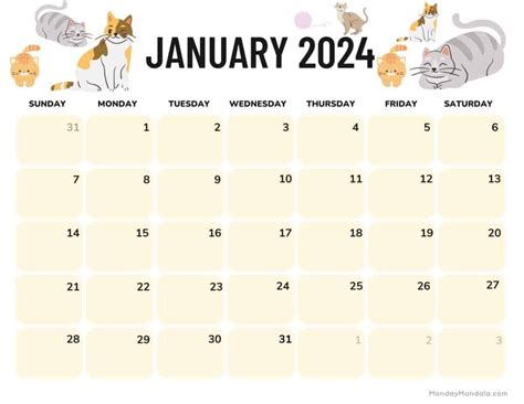 December 2024 Cat Calendar Printable