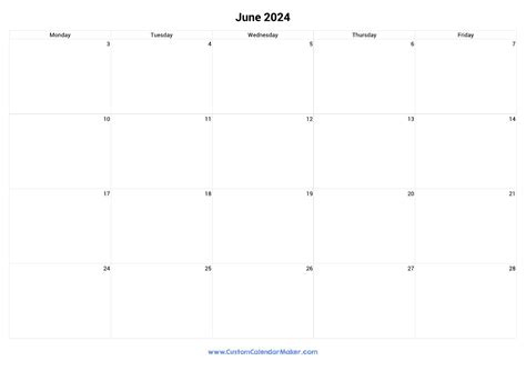 Blank Calendar Weekdays Only 2024 – Create your own calendarby customizing the country, year, and the week start of the calendar. This monday start 2024 calendaris a free printable template.…